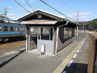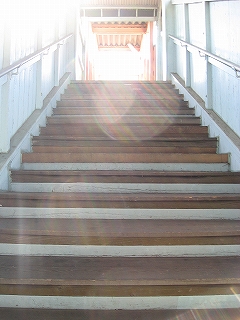やっと気持ちだけに押されて外に出られた。すぐにここの空気がきれいであることがわかった。森から青空の下にやって来たような冷たい碧色の空気をむねいっぱいに吸う。隣のホームには駅舎の木造の軒下が見え、着いた島式ホームにはやや新しい目の色の濃い木造の待合室があった。わざわざ木で作るのがまたよかった。駅の規模としては、昔の典型的な造りに近いものだった。さっそく階段をあがりはじめる。するとびっくりする、ステップが木だった。表も角も砂で磨耗している。シロフォンを踏むみたいに、ぽくぽくやわらかい音の立つのを聞きながら、どきどきして上った。上まであがると、いつもと違い、裏手に向かって鉄の階段が足を下ろしている。そしてそこからの展望といったら、きれいに整った里山に、広がる冬畑、そして小さな集落。すごいところに来た。ここを下りる時間はなく、惜しみながら駅舎へと向かった。