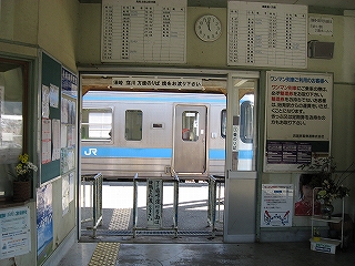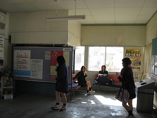 駅舎の中は古い。いっぱい貼り出しをした窓口は黄色っぽいカーテンで閉じられ、待合にはペンキ塗りの古い長椅子が幾脚かあった。そこには女の高校生らが談笑している。今日はテストだろうか。でもお昼ごろに高校生を見かけることは多々ある気がしている。
