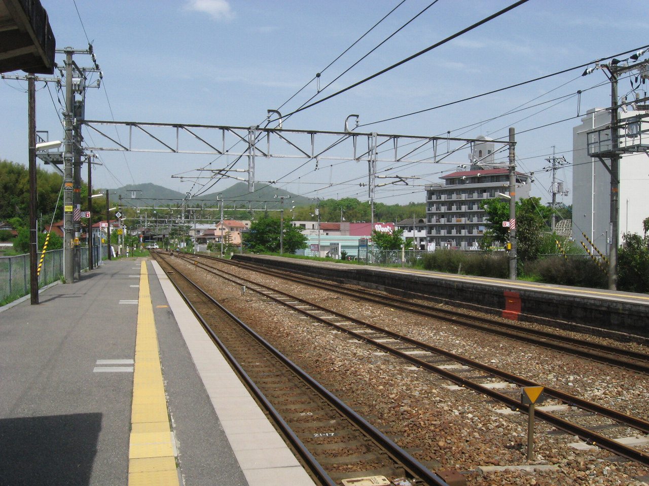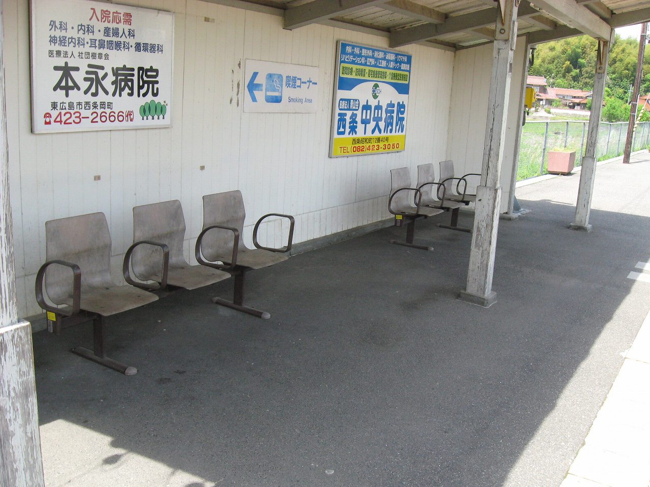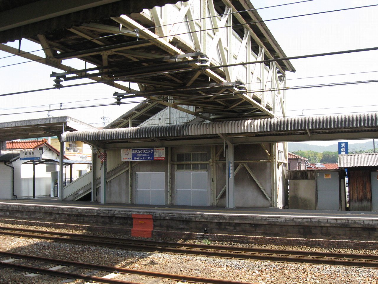 広島近郊区間で大都市に近づいてきた感のある駅だが、裏手を見るとほっとする風景