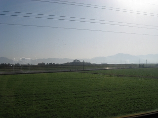 そう思いながら折尾行きの列車に乗った。とても新しい車両。しかし上りとあって人が多く、座れなかった。なんとなくみなお出かけの恰好をし、気楽な会話をしている。天気もよかった。立ったまま、車窓をずっと眺める。まさにさっき見た風景の巻き戻し。緑の盆地を経て、家集まる近郊へ、そして折尾の都市だった。