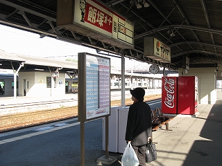 またそういう余裕のある造りのため、落ち着いて列車を待っていられるようで、静かに座して待つ人がいた。が、この駅を立ち去るころになると、子連れのグループが複数入ってきて、駅舎内はとてもにぎやかに。券売機の前で金額を大きな声で言いながら子供に切符を買わせている光景を見ることができた。この土曜はどこへ連れて行ってもらうのかな。