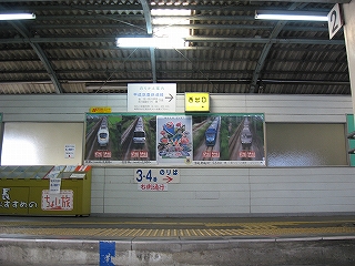3・4番線ホーム階段下り口前にて。