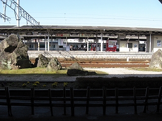 回廊から見た駅庭と1番線。