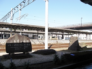ここにバスが停車する。汽車駅がよく見えた。