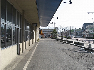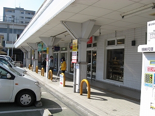 バスターミナルの建物前にて。