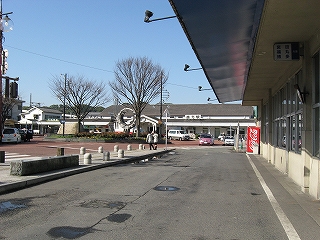 駅舎は中を見たときの印象と少しも変わらないもので、やっぱり白かった。そして目で追うと思いのほか横に長い。ただ車寄せ全体に有刺鉄線か枯れ蔦のようなものが巻きついていて、なんでだ。電飾だったのだが、お昼はだめなようだ。展開場の真ん中にも電飾があり、直方はやはりしゃれの気がありそう。