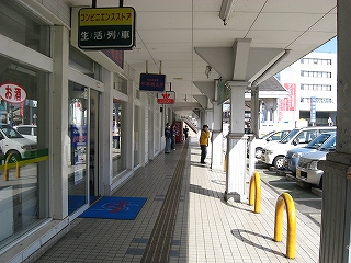 駅出て右手の軒下の風景。いろんなテナントが入っているが、