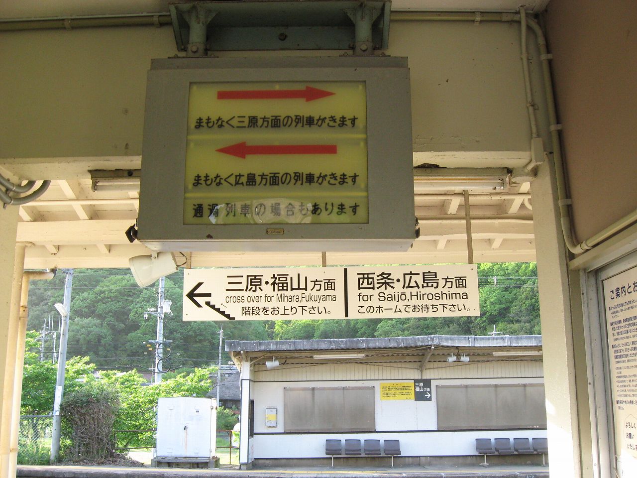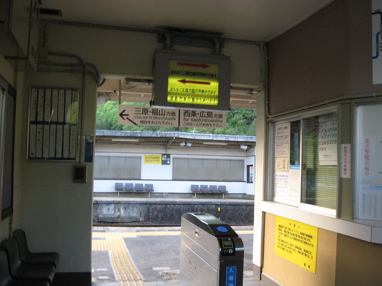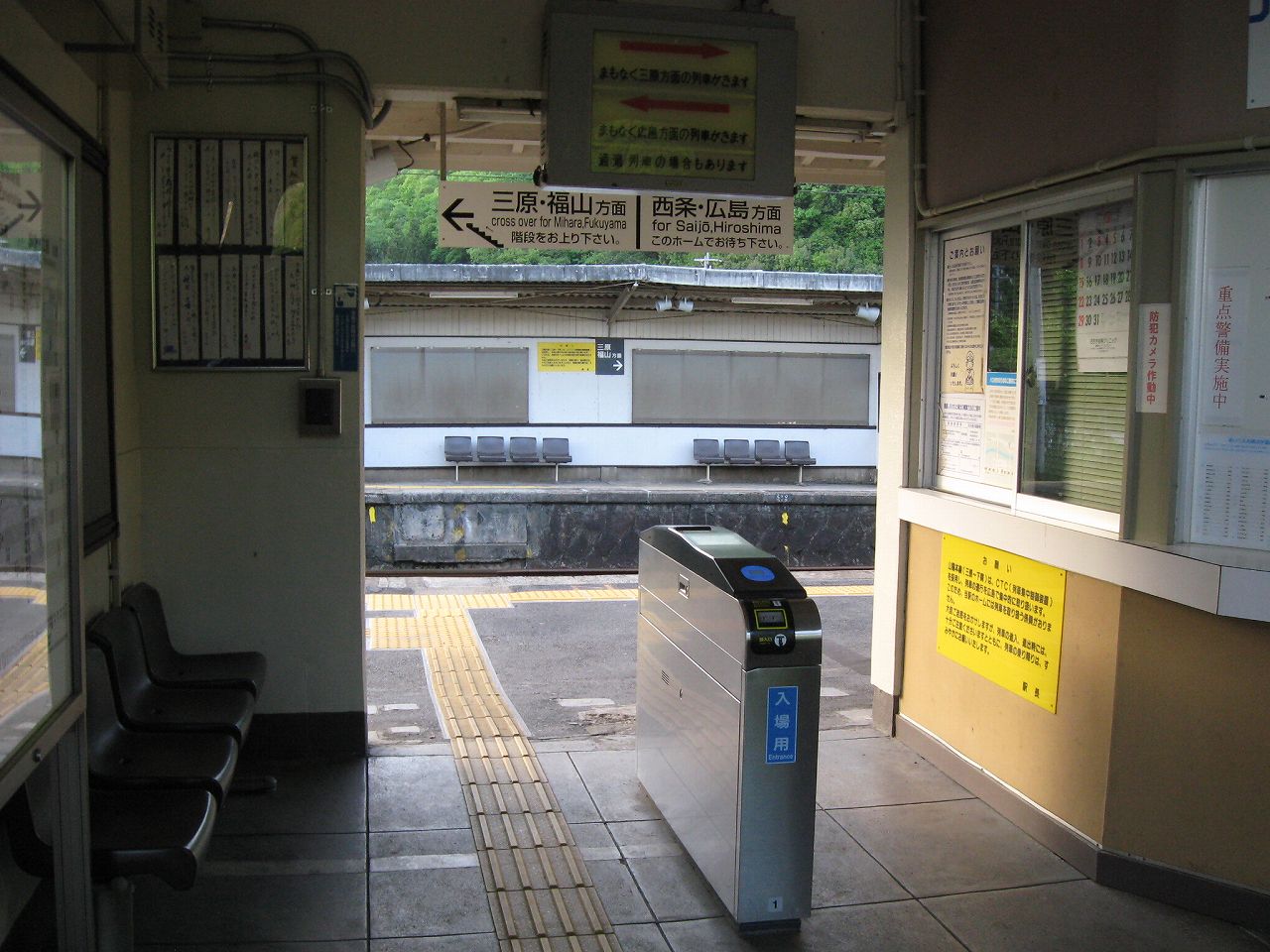 糸崎で罅割れた日の光を浴びていると、次訪れる駅がこの日最後になりそうだと思った。そういうとき、僕はたいてい無人駅を選んでいる。何より落ち着くし、長い時間休憩していても気にかける必要がないし。ただじっと駅舎の中に居つづけるのは感じが悪いから、どちらかというと、出歩いていることの方が多いかもしれない。こういう駅を最後に選ぶ欠点といえば…店がないことだ。だから自販機での飲み物が最高の御馳走になったりする。