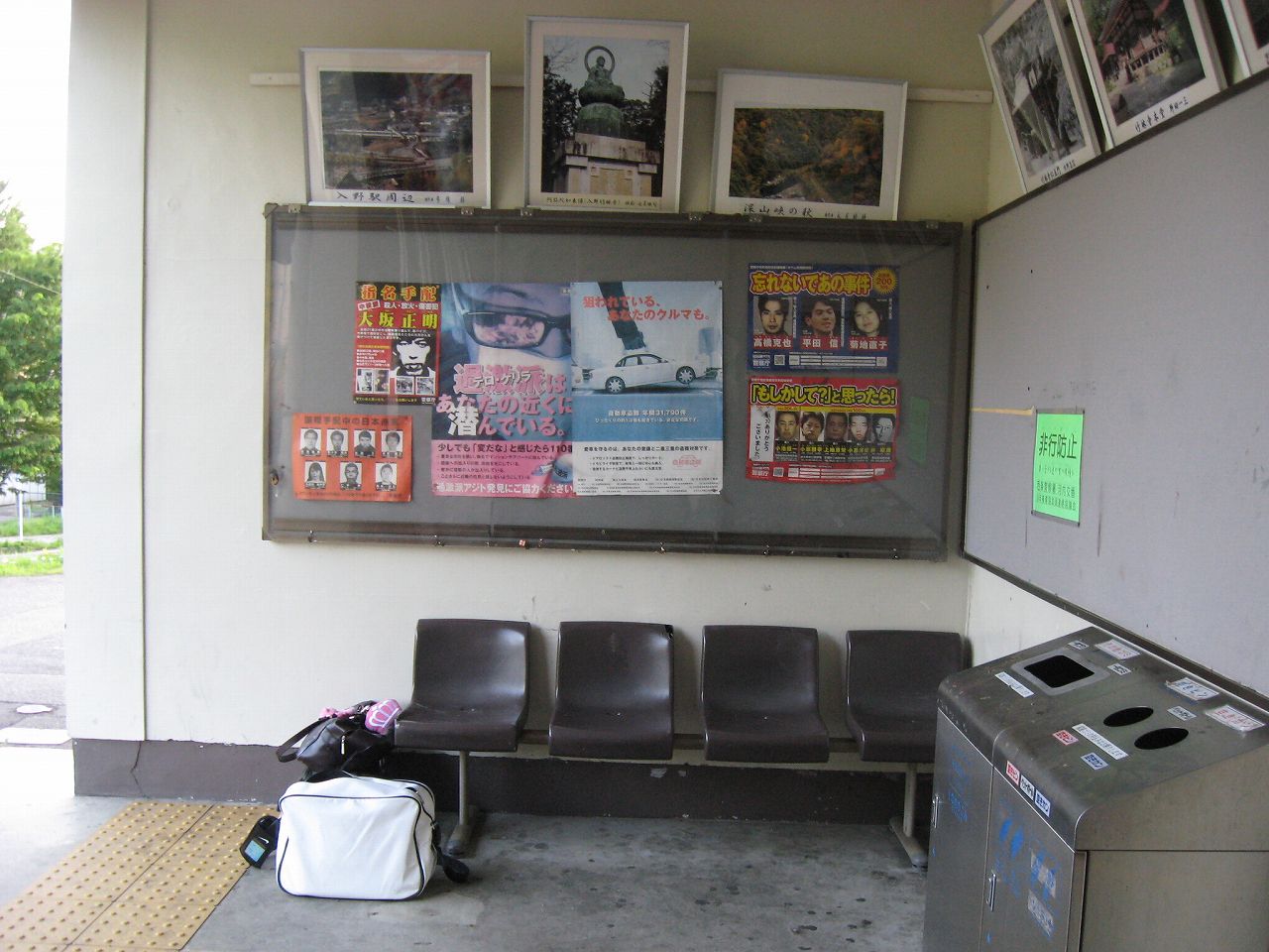 ひっこ一人いやしないニュータウン的なロータリーにくさくさしつ気持ちになりつつ、駅に戻ると、二人の高校生カップルがまだたむろしていた。彼らの乗る列車はもうとうに行ったはずだ。彼らは僕を見上げた気がするが、僕はただ列車に乗ってもうこの飽き飽きするようなここを離れて。次の新しい場所に行きたいので、さっさと中に入って座って待った。そこはちょうど券売機の陰で、ほどほどにくつろげた。
