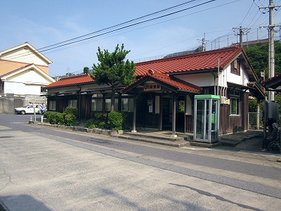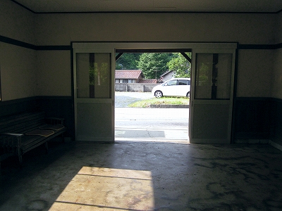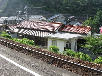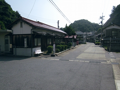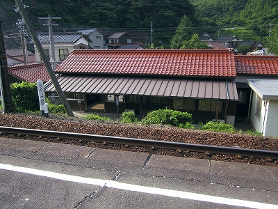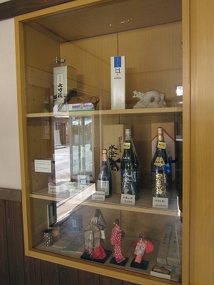 建物は古来からのものだけど、とりあえず景観を保ちつつきれいにしたようで、中は窓口も何もなく地酒がディスプレイされていた。なんか駅員の顔がそれに置き換わったみたいで滑稽でおもしろい。