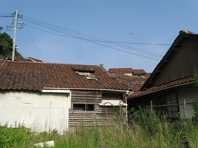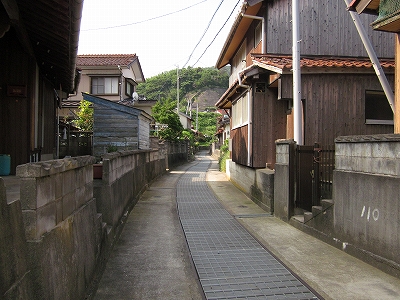 酸化鉄Ⅲのような石州瓦の光に目をやられながら集落を歩く。その道の広さからすぐに海に出られることを占う。途中、おもしろそうな地下道があって、そこに入っていいものか窺っていると、いきなり高いところから声がした。