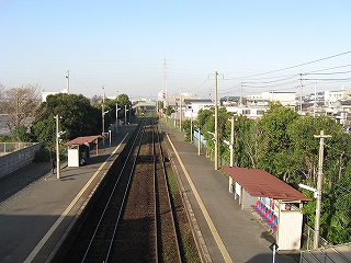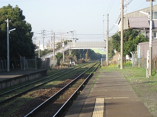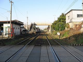 踏切から見た駅。