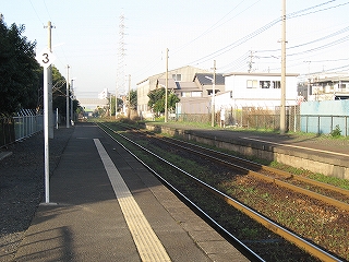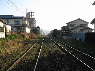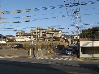踏切にて駅を望む。