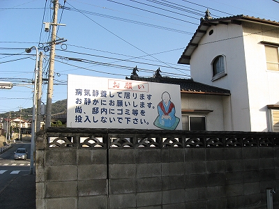 ところで国道に出る手前のとあるお宅は、お婆さんのイラストともに、病気養生中のためお静かに願います、との看板を大きく出していて、噴き出した。なんだこれは。