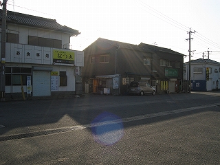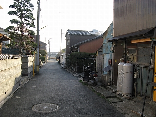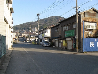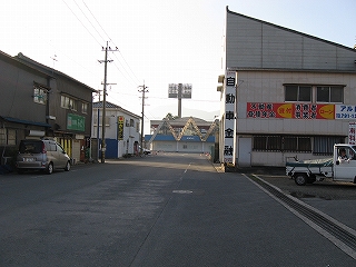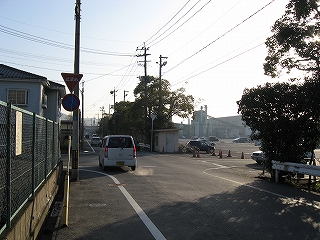 競艇場前の道。狭い。