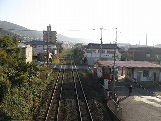 跨線橋の階段から見た若松方面の風景。