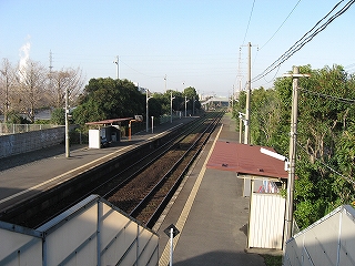 奥に木々が茂っているのが特徴。向こうのホームにいたとき木の間から向こうを垣間見たりした。