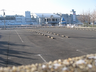 隣の藤ノ木からひと駅、奥洞海。降りてすぐ、このあたりは土地に余裕があるのを感じた。降りた乗り場がまず広かったのだが、ホームの縁付近から離れたところは舗装しておらず、線路内を埋めたところなのかと思えるほどだった。しかしそれだけでなく、高くコンクリート塀に囲まれていて、向こうに何か土地が広がっていそうなのだ。低い工場や設備があるのかと思って覗くと、拍子抜け、ただの広大な駐車場だった。あ、競艇場が近くにあったな、そう改めて思い出す。