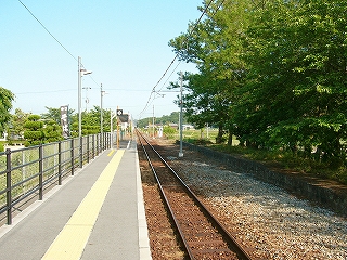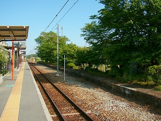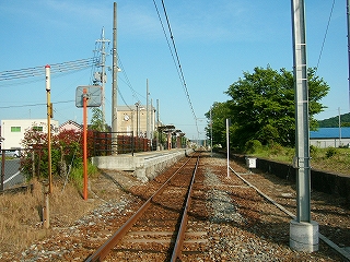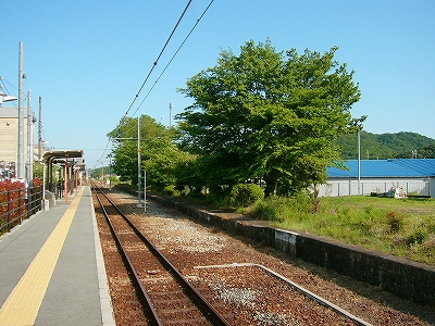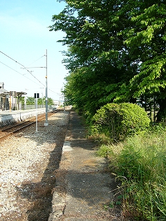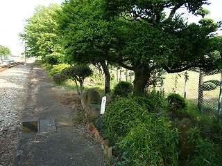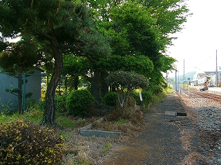 降りて初めに見入ったが、向かいのホームが大昔のまま残存している。とにかくホームが低いし狭いし、庭木や庭石がほぼそのままで、落ち着いた気品のある駅だったことがいやがおうにも窺われた。庭木の一部は生長していて、さすがにこのままだとホームとしてはもう使えまい。しかし、どう考えても剪定された松があり、どうやら誰かが手を入れてくれているようなのである。駅の管理に当たってなかなかやりがいのあるところでもあり、また面倒くさいところでもありそうだ。やあしかしこんなところでかつての人々は列車を待っていたのか、とそのホームに立ってしばし想いやった。