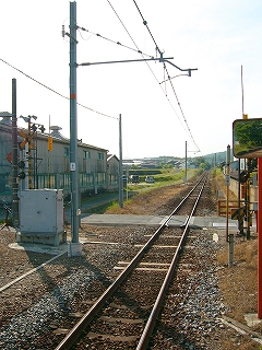 踏切にて構内を望む。