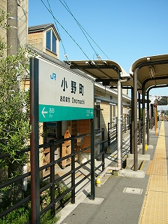 隣の市場駅から2両のワンマン列車に乗っているが、かなり混雑している。こういう支線は朝夕驚くほど混むことがあり、昼間とまったく異なる様相に戸惑うことがあった。ほどなくして小野町駅へ。駅名からすると、かわいらしいささやかな町、という感じだが、小野市街は加古川対岸にあり、そこには神戸電鉄が走っている。