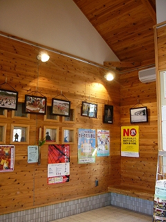 隣の市場駅ほど開放感はないが、待合室はあっちのように風変りなサイロ型ではなく四角で、据え付け長椅子に坐って足なんか組んでみると、こっちのほうが落ち着けて、また密な感じでよかった。中には退屈しのぎになる写真やポスターが掲げられている。