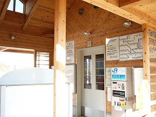 ここの駅舎もまた電化に際して一斉に建て替えられたものの一つで、木材を多用した新しい、はなから無人として設計された駅舎になっている。
