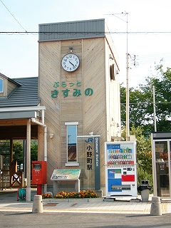 戻ると駅舎の前では例の人のほかにもまだ迎えをぼうっと待っている人がいて、そろそろ来てあげたらいいのに、と思う。あたりは本当に迎えの車が来るのかわからないぐらい、赤光の中、金物の音と裏手の畑を走る軽トラックの音ぐらいしか聞こえてこない。しかし待ち人は来るのを信じて待っている。その人の姿がだけがどこかの往来と繋がっているのを感じさせた。そういう背景の中に、端に角柱の時計塔をしつらえた大きな新しい駅舎が、そっけなく立っている。…播州らしいけど、やはりここの建物の本性は、矮屋たる駅舎だね。