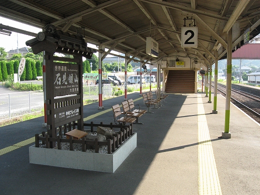 何人かが駅出てすぐの石見銀山行きのバスを待っている。旅行者だけでなく、そこに勤める地元の人らしき姿もあった。ひろっとカーブして飛び込んでくる高校生らの自転車を交わす。私には大田市駅が塔のように見えた。その誇らしさは真面目な影を擁している。文物の氾濫と華美はなくても実直、この国は大半の地域がそんなところではないのか、と。