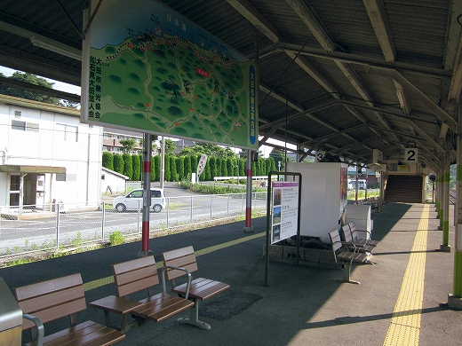 私は暑さもあって大田市駅前はぼんやりしたところのように感じていたが、事実、整備したての上に人もおらず、なんか眠たげだ。私の駅寝のせいもある。けれどいよいよここから悠長なる島根を西と東のあいだに突入するのだ、という、この駅のもたらす実感のせいもあった。島根西側の比類のない耽美的な風光に、夏の中、自分は辿り着こうとしているんだ…!