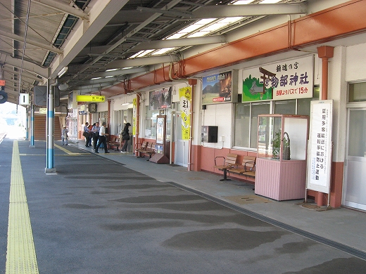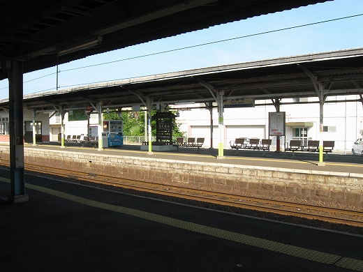 西へ五十猛まで下った後、まだ朝の時分に大田市まで戻った。更地になった小さな五十猛の駅から、情念の深い静間を経てこの市駅に入ると、とたん賑やかなところに来て、うきうきするような気分なのだ。中学生なら、そんな気持ちなるに相違ない。売店もあるし、駅員もいる! 尤も、小さな駅ではあるが、沿線みんなの街、そういう気持ちになった。朝日もまたまぶしかった。