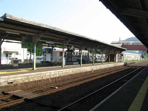 今は真夏の朝8時だ。裏山では蝉がジクジク鳴きはじめて、深々とした涼やかな上屋を出たとたん、猛烈な日差しに射抜かれた。本当に膚が痛いくらいなんだ。そうして西の方を展望する。やがて単線になり、静かな集落を訥々と伸びている、それで、本当に端の方まで自分は来ているんだなと。山陰といっても、江南以西はまったく雰囲気が違う。奥山陰とでもいう感じだろうか。