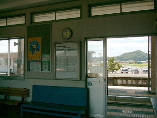 スロープと段差でややこしくなった旧改札口を通って、改めて駅舎へ入った。中にはいくつも長椅子がある。時刻表は黒字だけでぱらぱらと数字が書いてあり、その上に掛かっている時計は、時刻表となんど見比べられても変わるところがないような感じで、音もなく、ただ針を進めていた。ふだん特急で通過ばかりするこの駅の中は、こんなだったのか。