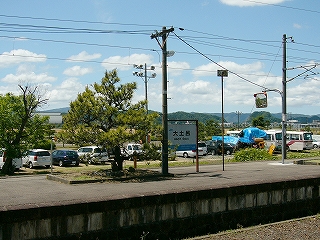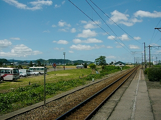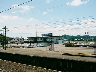 民家を前にした駅前広場には自動車が多く駐まっている。駅利用者のための駐車場だった。こんなふうにとても昔の駅舎のある駅だが、今でもここを間違いなく必要している人がいるんだとわかり、そういう人たちが、故郷を受け継ついでいるものの、新しい人に思えた。