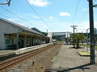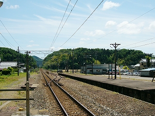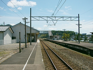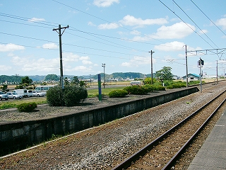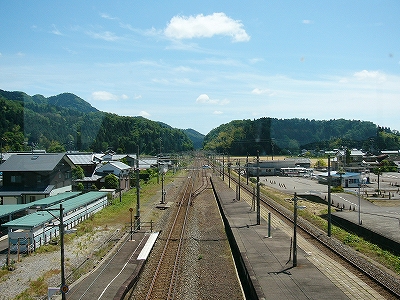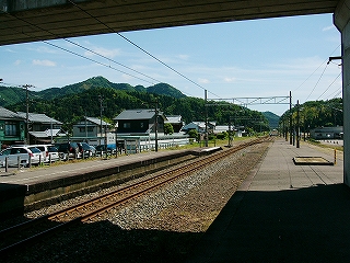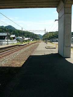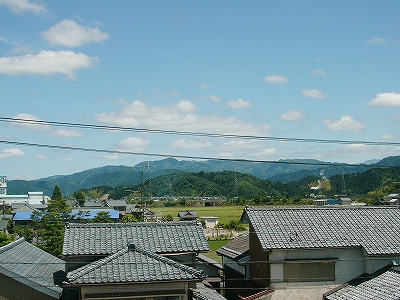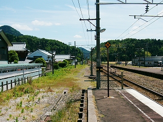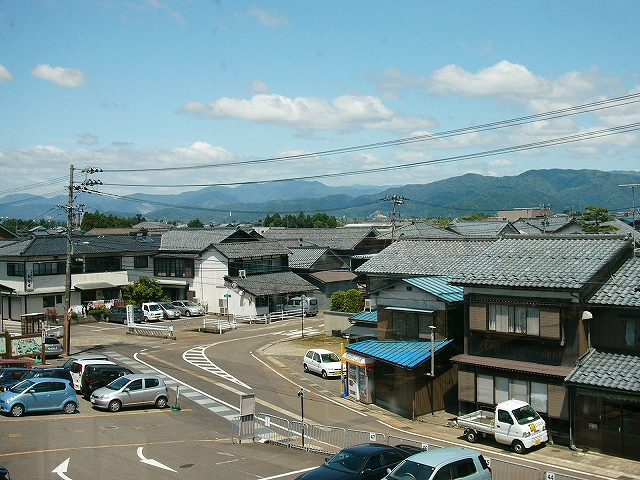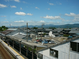 動きもない店もありそうにない小さな駅前、古民家の並びのずっと向こうに、永平寺や勝山の山地が青く流れている。このあたりは遠く山にとりまかれているにもかかわらず、うっとおしくないというところだった。福井のある町というと、こんな風景も浮かんでくる。北陸本線のほかの駅では、王子保がこんな風景の要素を持っていた。