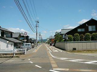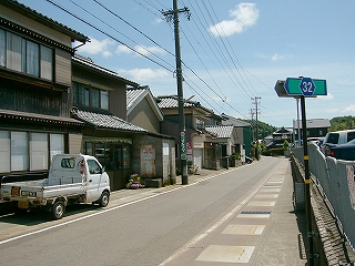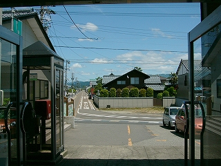 駅から出て、右から来ていた県道32号線。この先、駅裏手遠くにある国道8号線と交わり、浅水 (あそうず) までを繋いでいる。