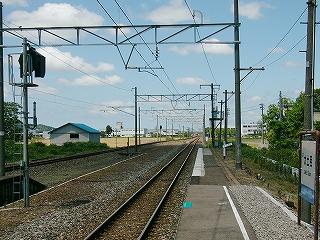 駅舎のあるこのホームからも、裏手の北陸自動車学校が見える。