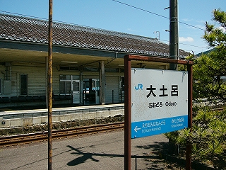 駅からの道は、右と真っ直ぐだけ。真っ直ぐの広い道は、木造の民家がすっきりと立ち並ぶ。ここは平野部のうち、越前花堂から、北陸本線のここ大土呂までと、越美北線の越前東郷までの、2つの鉄路、さらに南の文殊山の山系の、これら3つに囲まれた平地となっている。広いところなのだが、付近は家々が多く、駅前からも跨線橋からも、見渡せるというものではなかった。店はなさそうなのだけど、あとで地図を見ると、このすぐ近くに鮮魚店があるとのことだった。販売機は駅舎を出てすぐ横と、駅前の旧クリーニング屋の前に用意されている。公園のほうにちょっと回ってみると、小さいトイレがしつらえてあった。これが駅トイレとなるようだ。