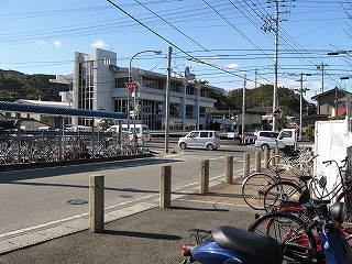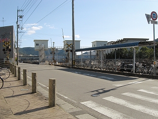 国道への短い道までには歩道に作った駐輪所や、おそらく駅トイレとして建てられたものがあり、駅の機能がだいぶはみ出していた。近くにへんろみち、という手書き案内があったから、そういう人もこの新しいトイレを使うのかもしれないと思われた。その近くに、駐輪にまみれながらも目立つ表示が2つあり、1つは昭和南海地震0.9m,もっと高いところに、次回南海地震予想3.1m…。津波のことで、わかりやすい掲示の方法だった。近くに川もあるからなのだが、毎日見るような駐輪所のこんなところにあると、向き合っていこうという気になるようだった。