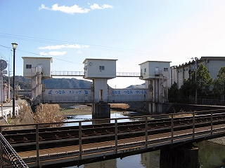 ホームを須崎方向に歩いて道に出ると、右からすぐに自動車の走行音が聞こえてきた。住宅地ばかりではないんだ。すぐに国道へ出てみよう、と気持ちがはやった。でも海側も気になって見てみると、少し向こうに「つなみ ストップ おおま つなみ すいもん」と書かれた大きな水門が川に立っていた。もう海がすぐそこなんだね。海面は少しも見えない、けれどももう海を見たかのようだった。