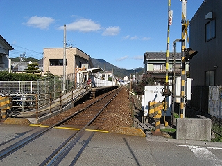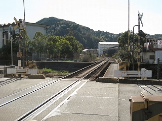 ホームからの通路はかっきり右に曲がっている。 降りた人の動線を踏切の入口に持ってくるためだろう。