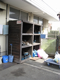 車両清掃の仕事道具置き場。この横にメンテナンスをする詰所がある。