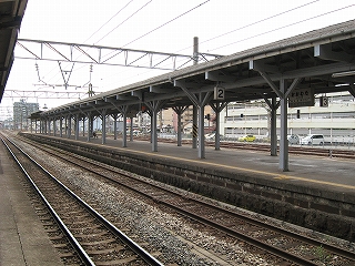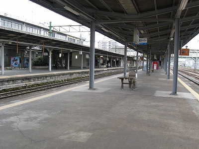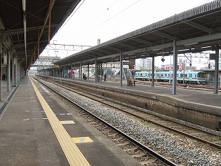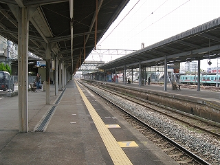 1番線久留米方端付近のホームが狭まる手前にて。