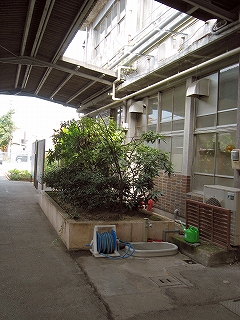 ちょっと憩いのスペース。感心したことに採光のため屋根が切り取られていた。