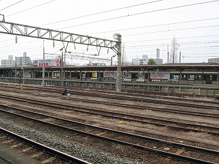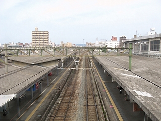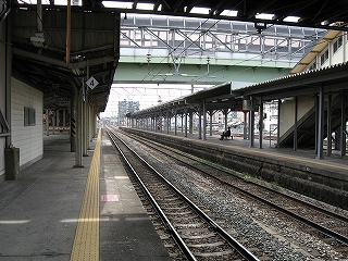 駅構内を久留米方に見渡して。