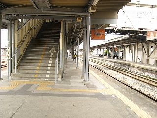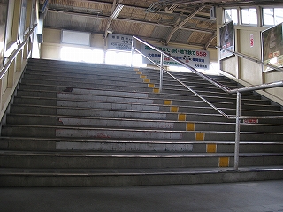 跨線橋の階段。ほかの駅と違い幅が広い。