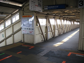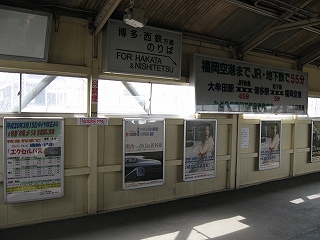 西鉄への跨線橋。連絡通路のためか、ポスターなどはなし。
