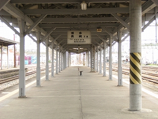 西鉄とJR3番線の間。どこまでがJRなのかわからない。