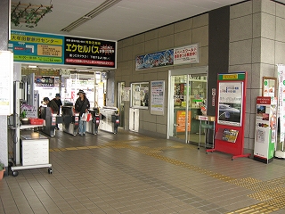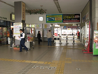 通路出口から見た改札前広場の様子。