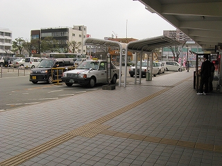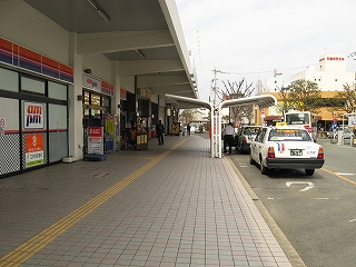 ロータリーから見た、西鉄バス待合所、バス乗り場。